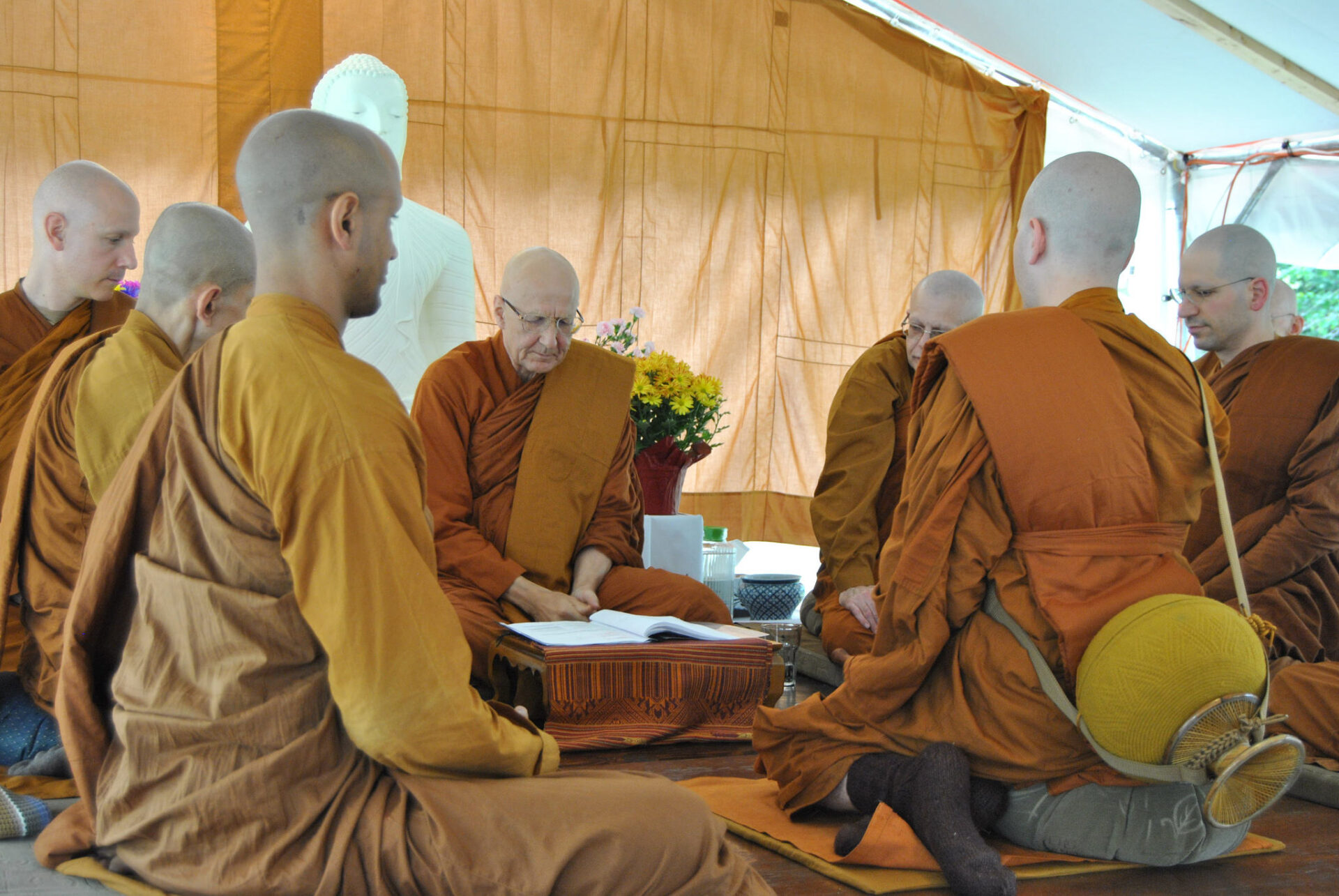 The ceremony will be followed by a Dhamma talk given by Ajahn Vīradhammo. This will all take place in our large outdoor tent at the monastery. In addition to the tent, canopies will be available in case there is a large attendance.